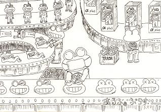 multiplicity カエルの大量生産。 この工場でカエルが 作られています。 |