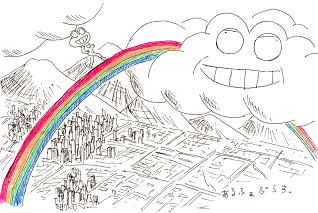 | rainbow ”雲のぱらだいす” という曲のイメージ イラスト。 |
