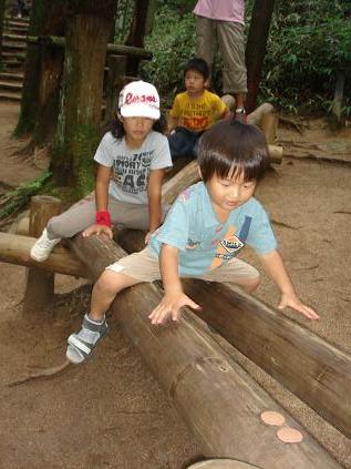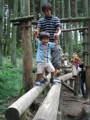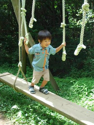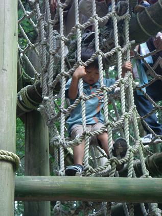 揺れる系のアスレチックは苦手。「これユラユラするから」と怒ってました。