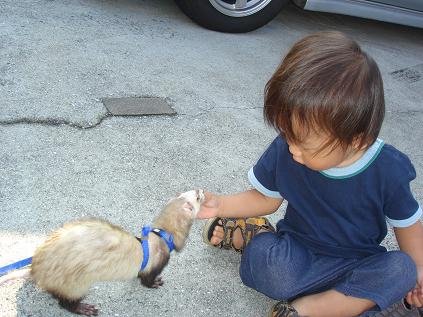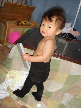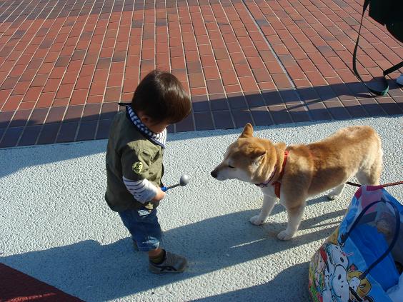 | 3.25.2006 | LEO MEETS DOGGY. 右手に持っているのは、おもちゃのお玉。 最近はこのお玉が一番お気に入りらしい。 |