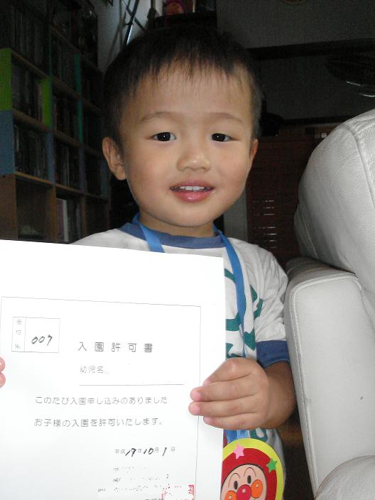 | 10.1.2007 | 幼稚園の入学許可がおりました。 アンパンマンの遊具がたくさんあるので、 レオは、アンパンマン幼稚園と呼んでます。 |