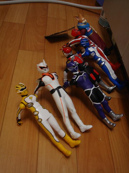 | 12.3.2007 | ゲキレンジャーのおもちゃをこのように並べて 遊ぶのがレオ流らしい、、、。 |