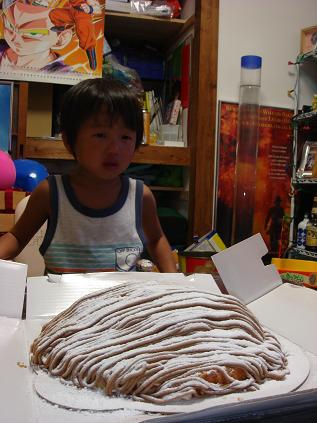 | 8.4.2009 | ケーキ おあずけ。 ちなみに 手前のケーキは 遠近法で大きいのではなく、 本当に巨大モンブランなのです。 コストコに売ってます。 |