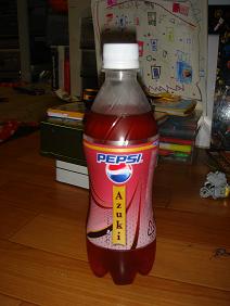 | 10.27.2009 | PEPSI AZUKI 出た。 ペプシあずき味。 味は。あずき味でした。 おすすめは、、、出来ません。 シソよりは、ましかも。 いったいペプシはどこへ向かっているのでしょう? でも出たらついつい買ってしまうのでした。 |