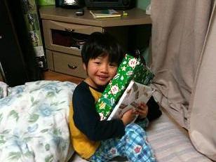 クリスマスプレゼント。 今年は、仮面ライダーダブルの変身ベルト。 どこのおもちゃや、電機屋さんに行っても 売り切れ状態。近所のおばちゃんが経営している ちっちゃいおもちゃ屋でようやくGET。 レオは、「売り切れてもサンタがおもちゃを作ってるから大丈夫やで」と。 |