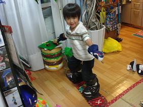 | 新横浜到着。 初のスノーヴァ新横浜! 完全にアウェー感満載。 キッカー大、小 2連ボックス 2連レール がありました。 その隙間をレオが 滑り降りる。 一番下のクォーターパイプにまくられてひっくり返っても、びびらず大笑い。 さすがジュニア。 |