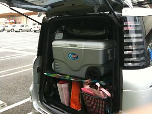 なかなかシエンタ ベッド快適に眠ることが 出来ました。 荷物は下のスペースと、ルーフボックスに収納。 スノーボードはキャリアにオン。 クーラーは、車外に 出して寝ます。 |
