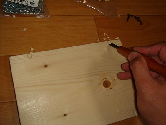 | ダボをはめる ための穴を 丸刀で彫ります。 |